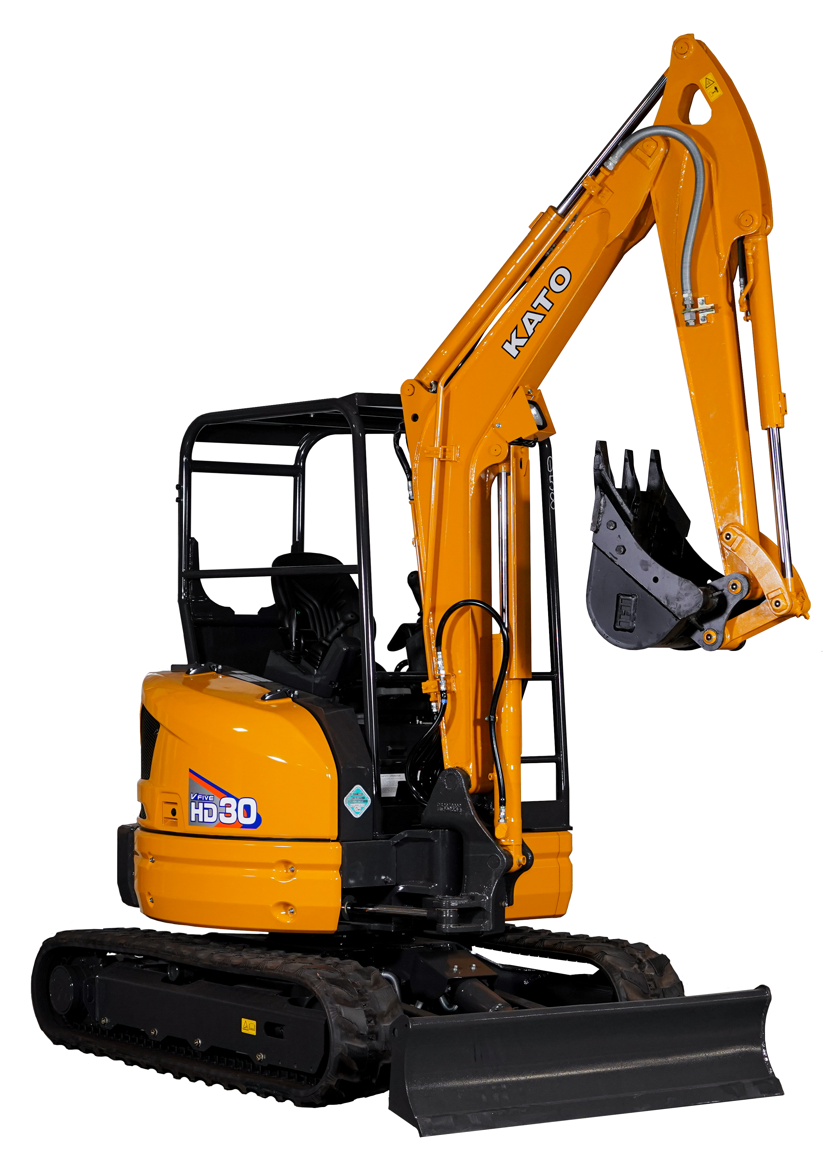The Kato HD30V5 is a 3.2-ton zero tail swing mini excavator designed for versatility, power, and operator comfort, making it ideal for urban construction, landscaping, and utility projects.